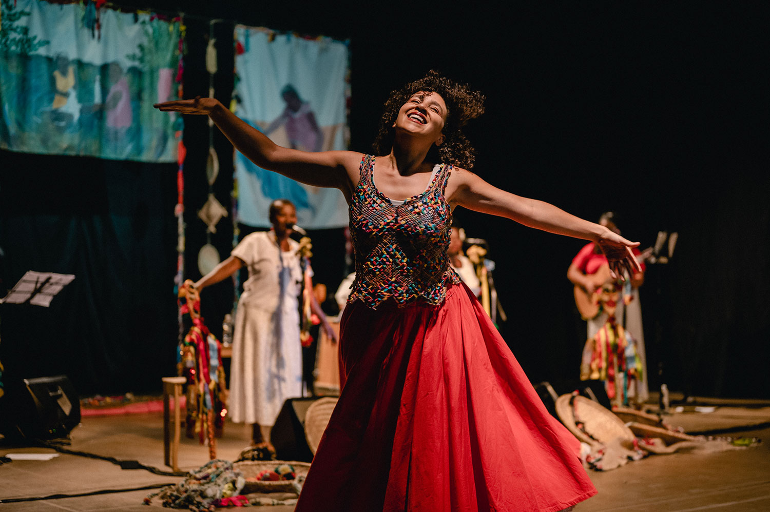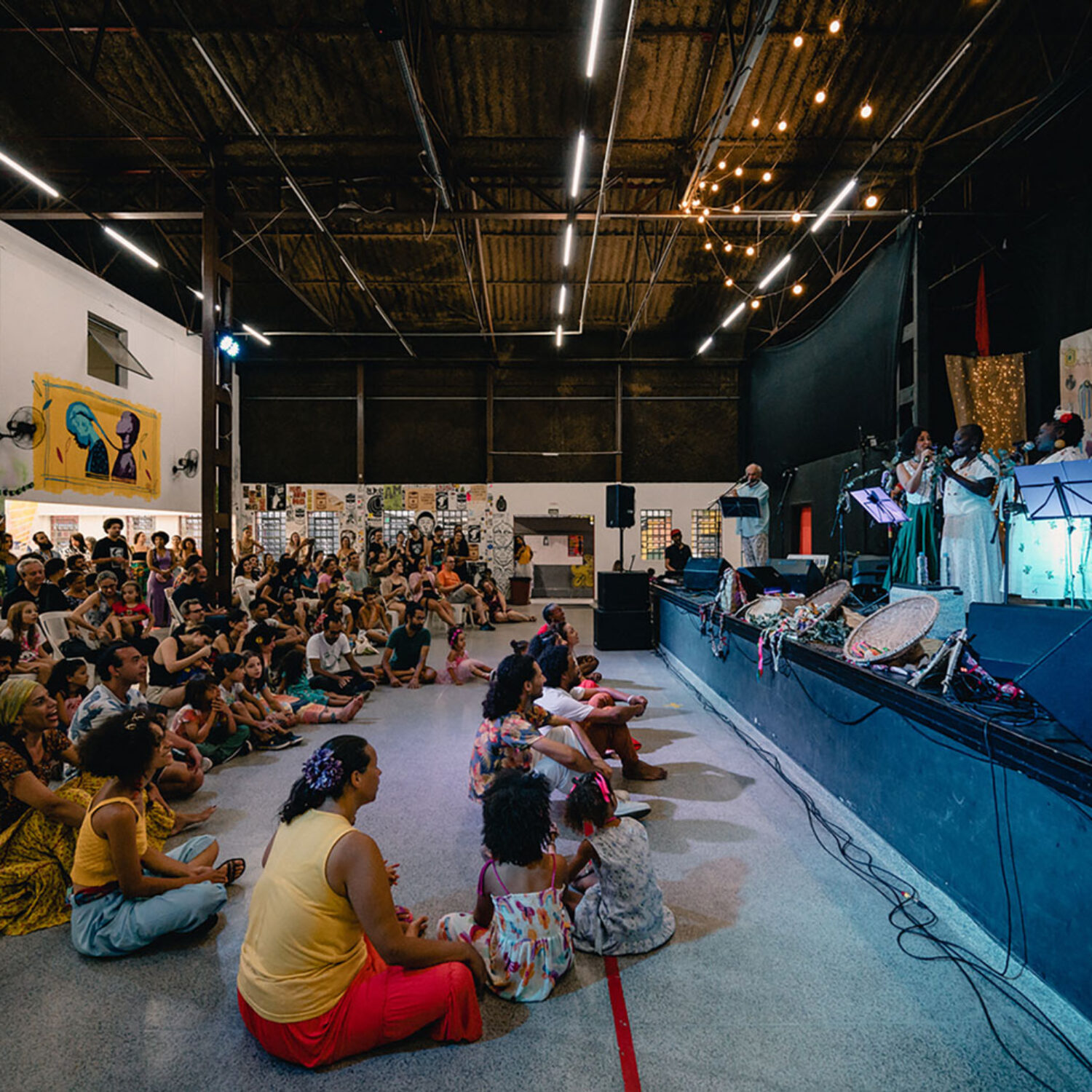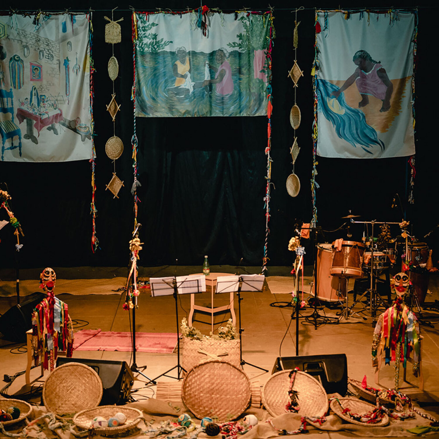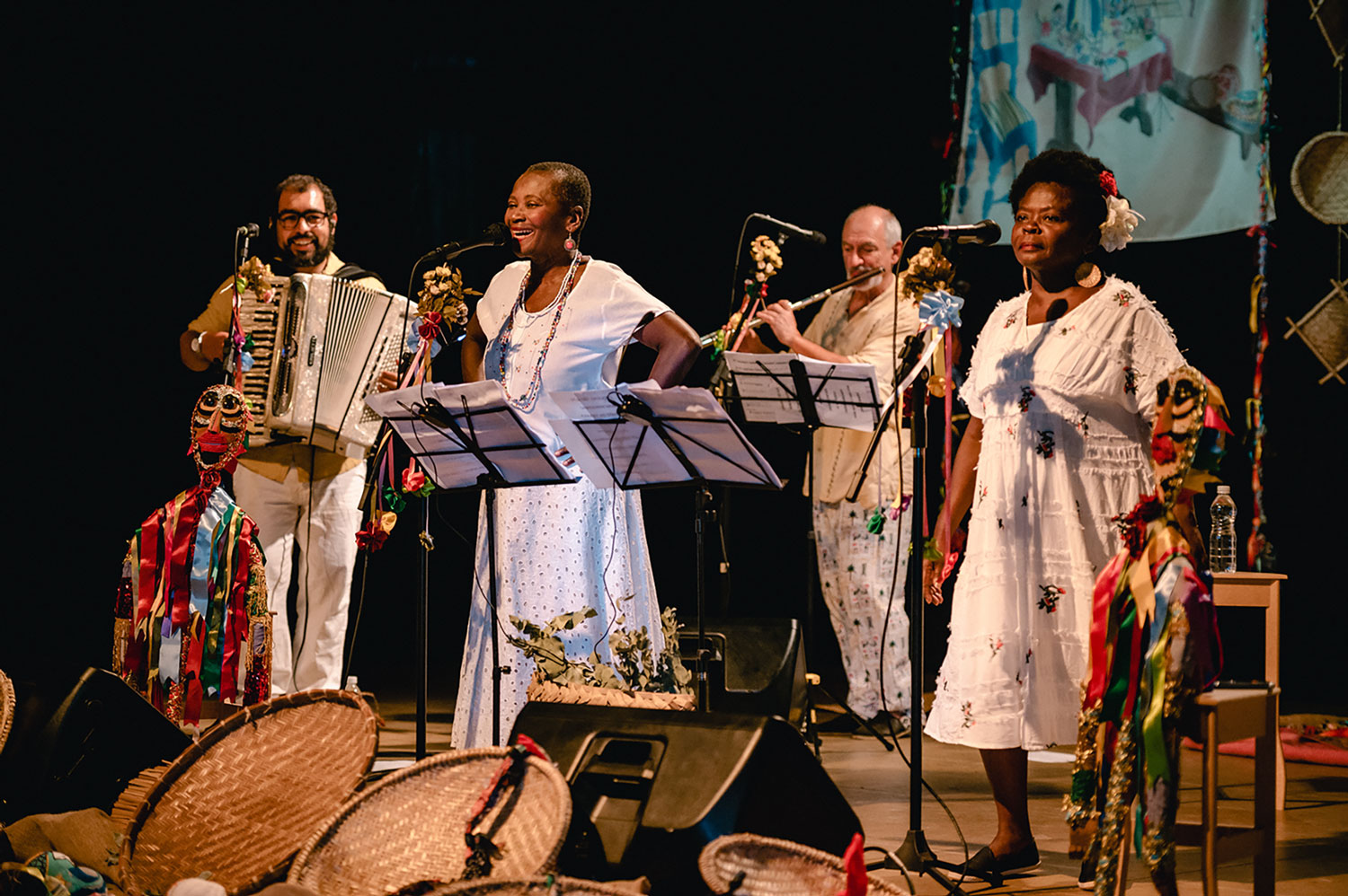 São sons e narrativas que remontam um Brasil do interior, negro e popular.O registro das histórias da nossa gente é muito importante numa perspectiva de descolonização do olhar e dos ouvidos. O espetáculo ainda conta com intervenção de brincantes que convidam o público a cair na dança e nas brincadeiras.