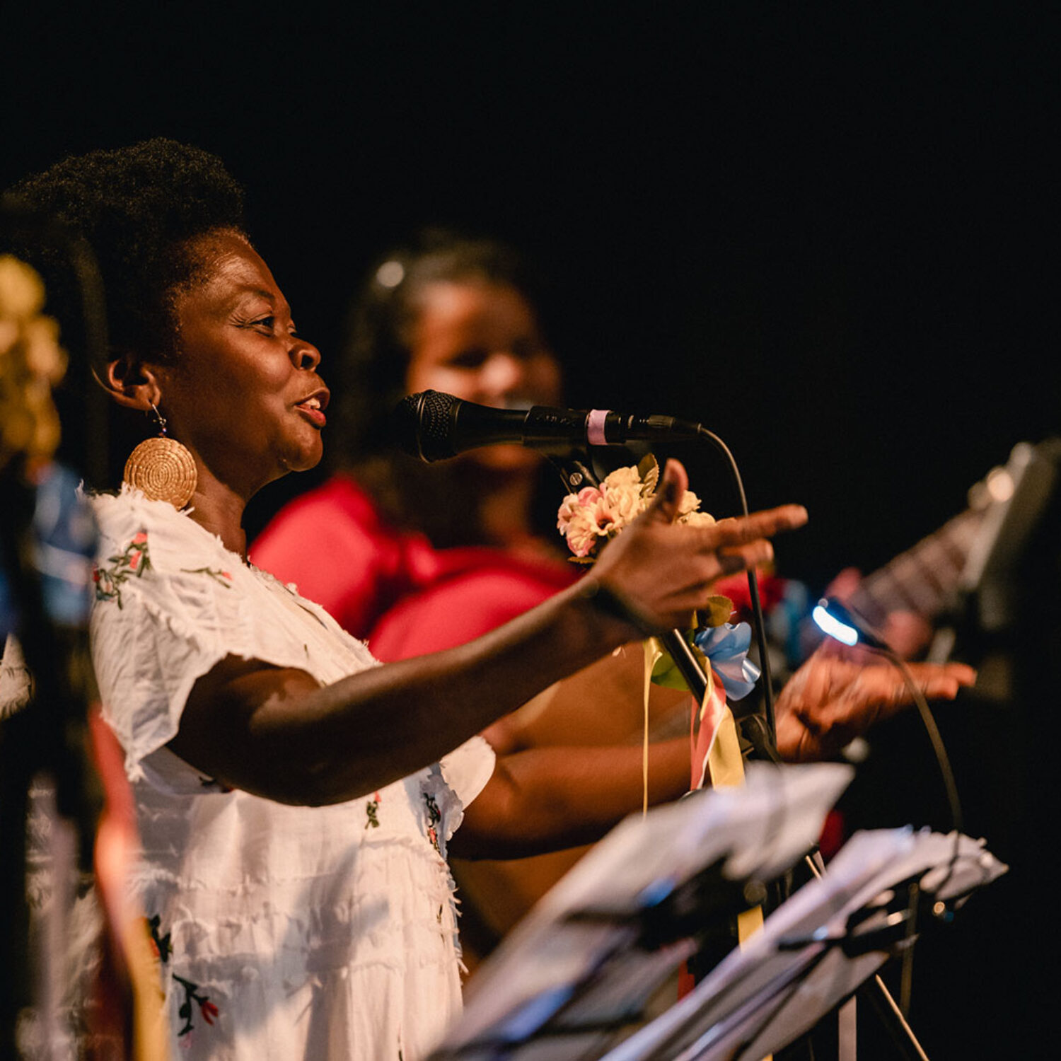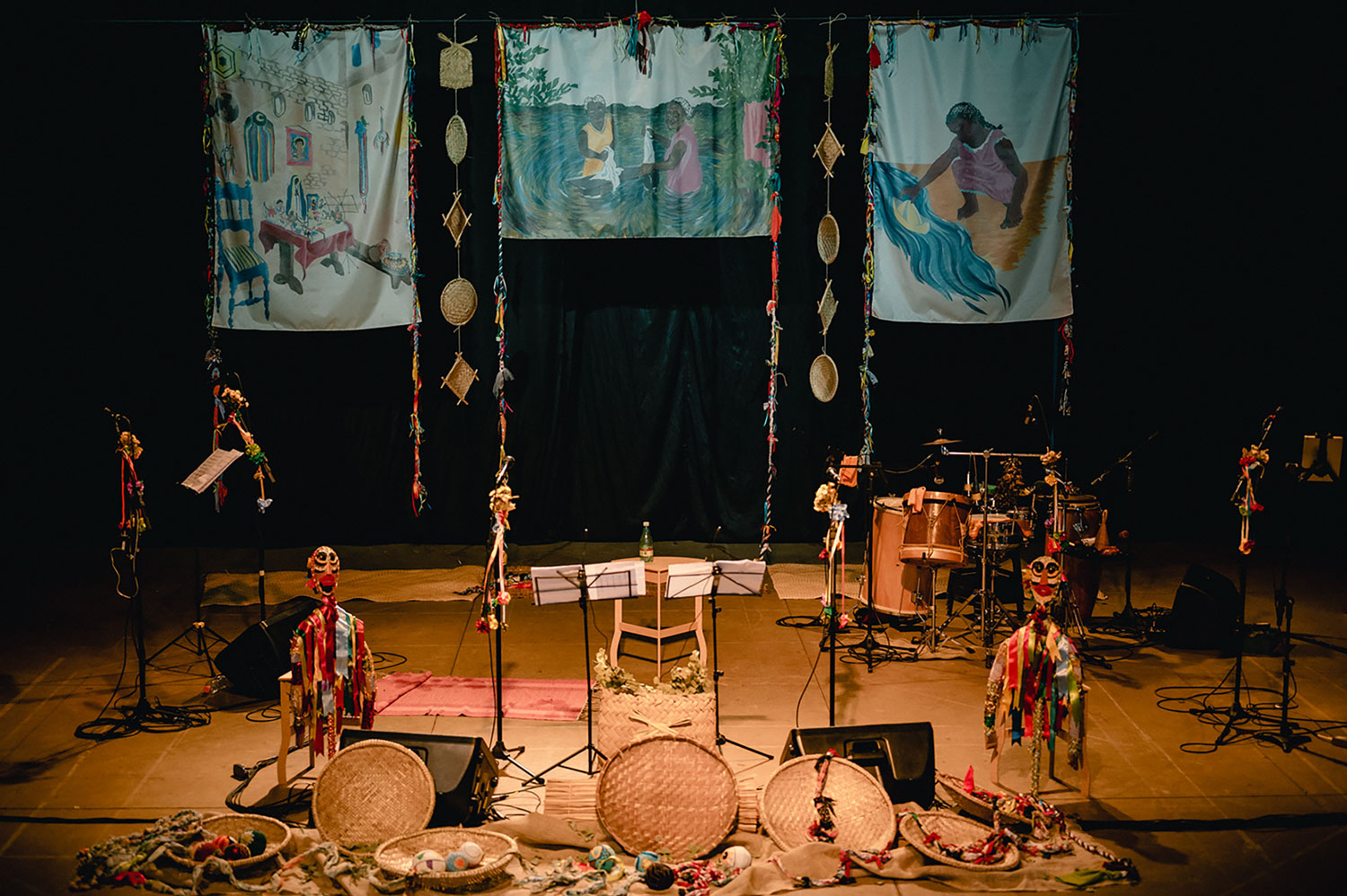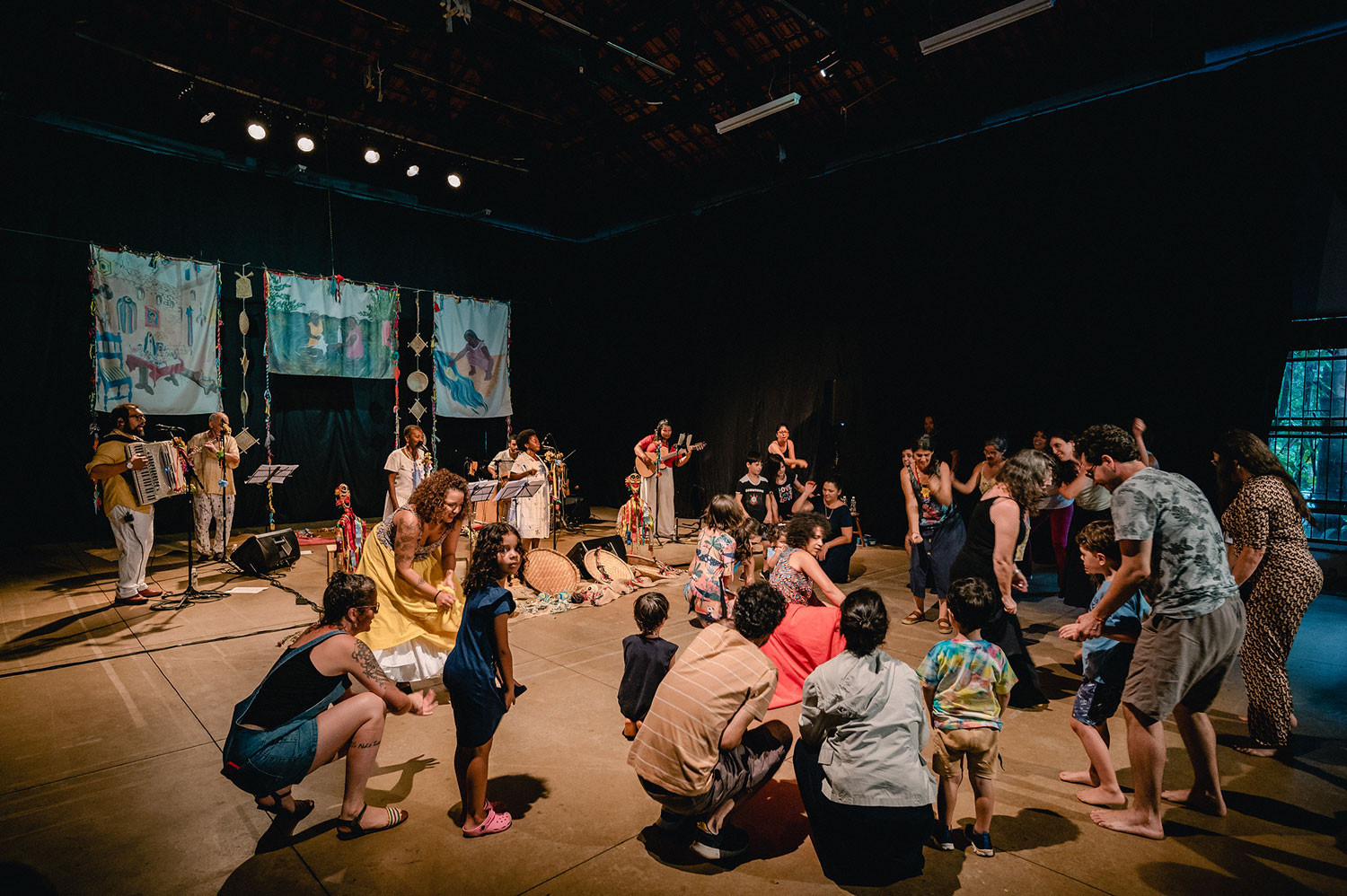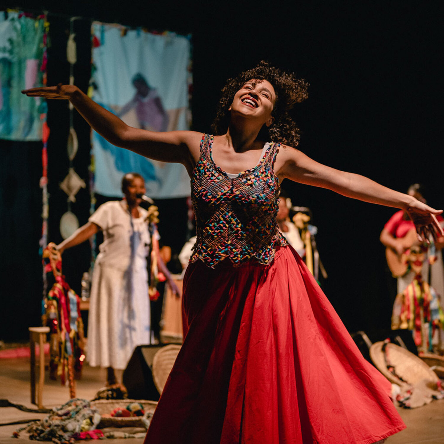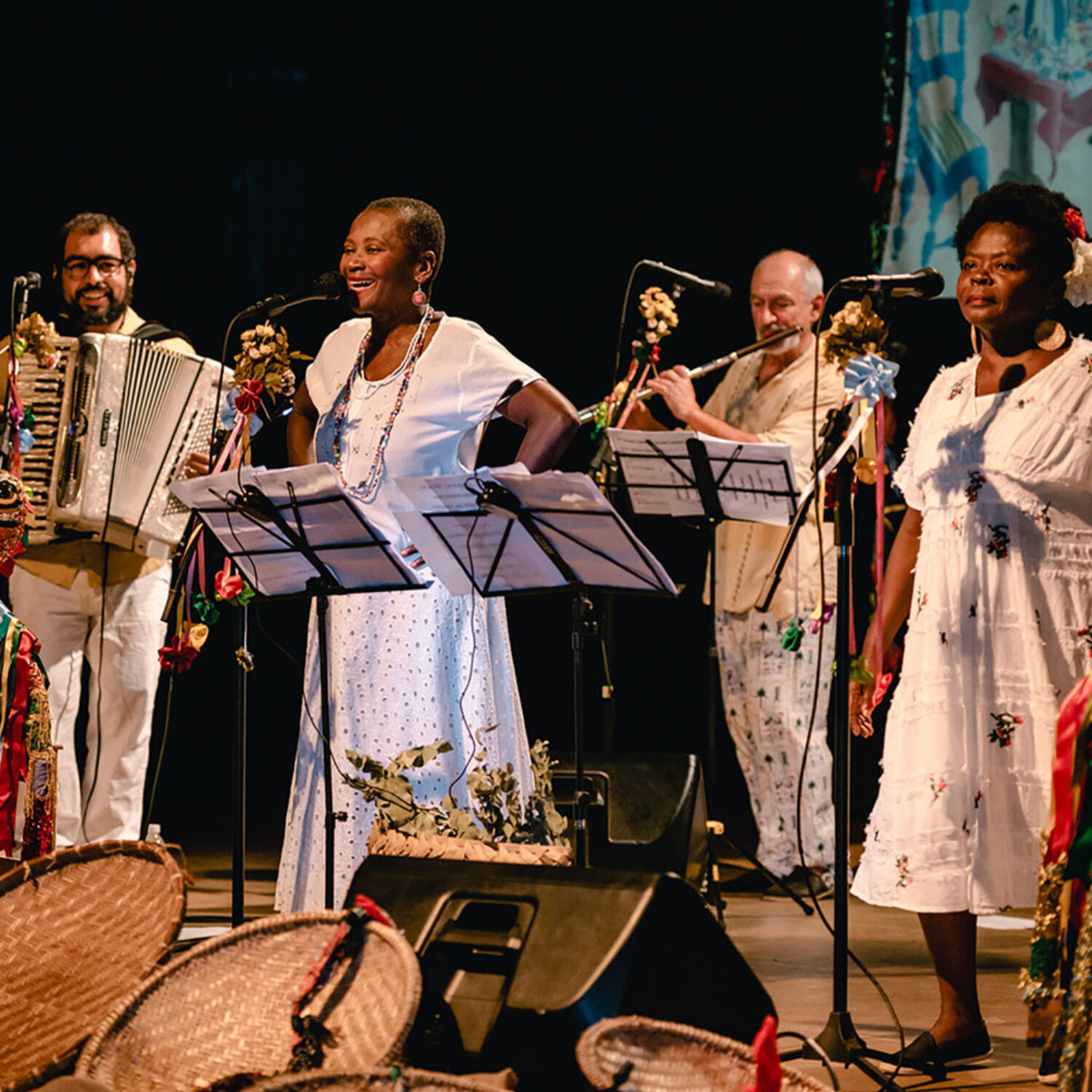 São sons e narrativas que remontam um Brasil do interior, negro e popular.O registro das histórias da nossa gente é muito importante numa perspectiva de descolonização do olhar e dos ouvidos. O espetáculo ainda conta com intervenção de brincantes que convidam o público a cair na dança e nas brincadeiras.
