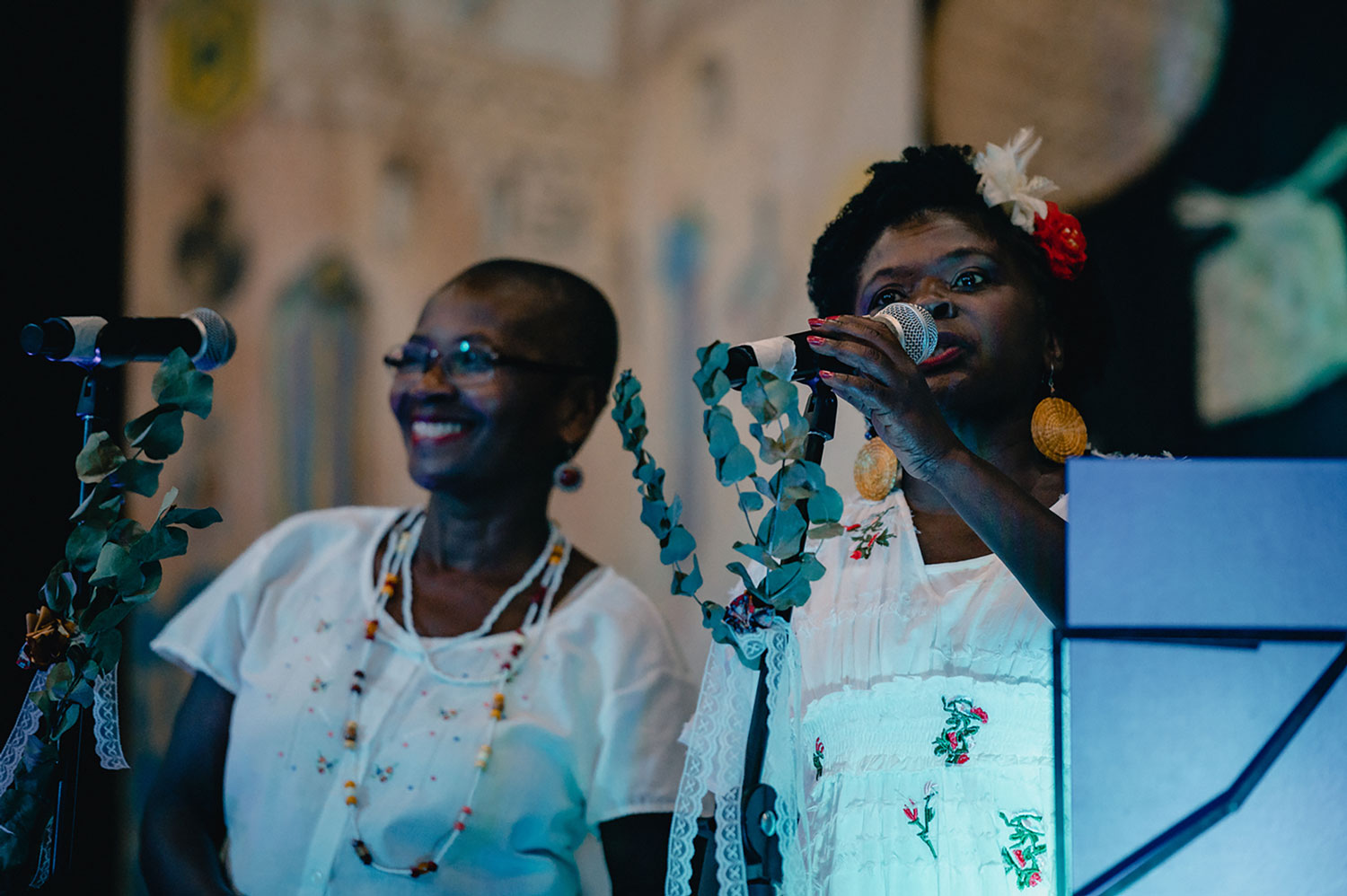 “Memórias de Carvalho” é o projeto das irmãs Ana Maria e Isabel Carvalho, mulheres negras que migraram de Cururupu no Maranhão para São Paulo e aqui se dedicam a preservar e disseminar os saberes, cores e sabores de sua terra há mais de 30 anos. Neste espetáculo as irmãs trazem histórias, cantigas e brincadeiras cantadas na sua infância, por seu pai Pepê Carvalho, sua mãe Florzinha, seus tios, vizinhos, cantadores e mestres da cultura popular, um repertório popular construído e resgatado coletivamente, que embalou a infância de Ana Maria e Isabel.